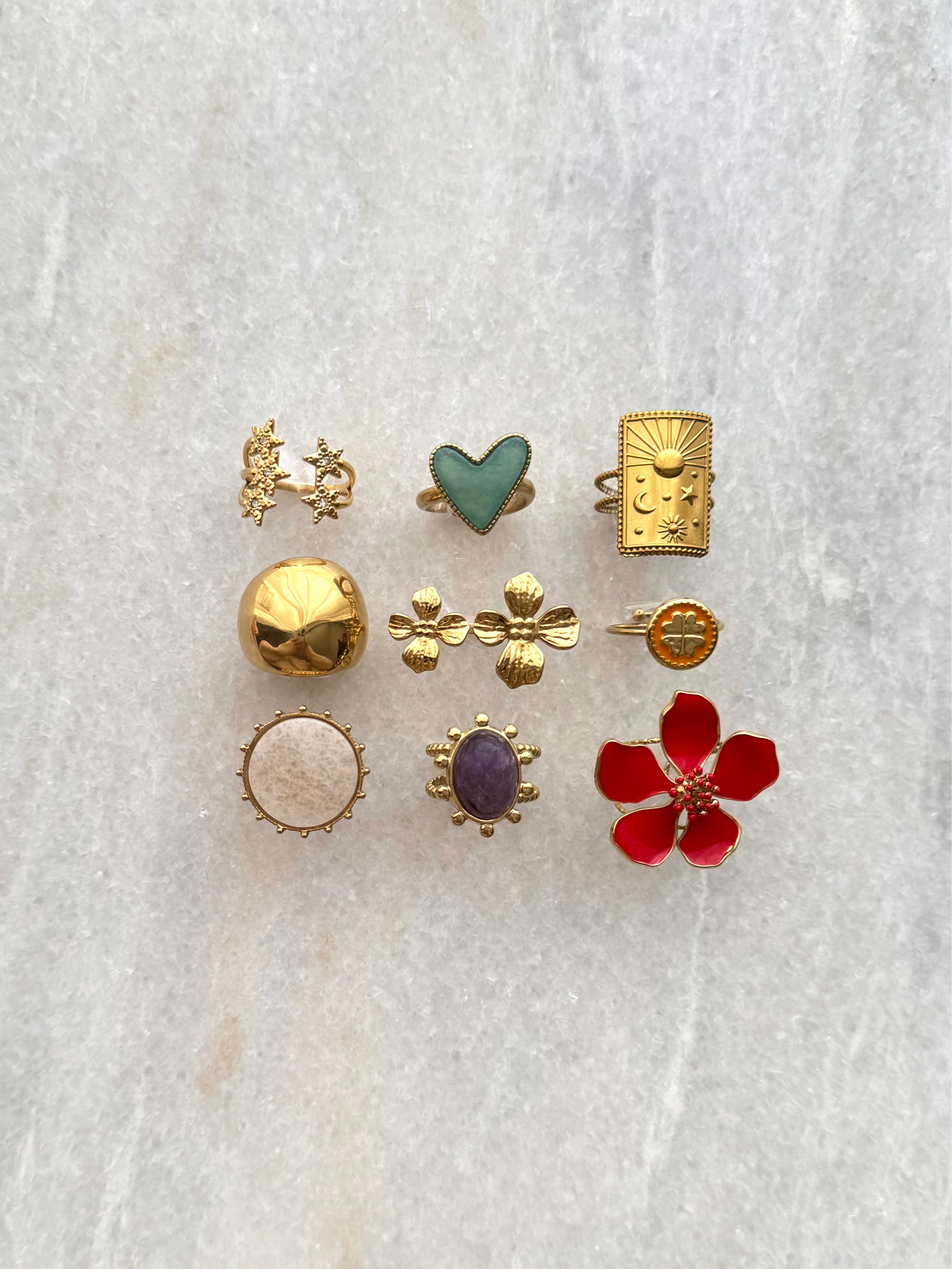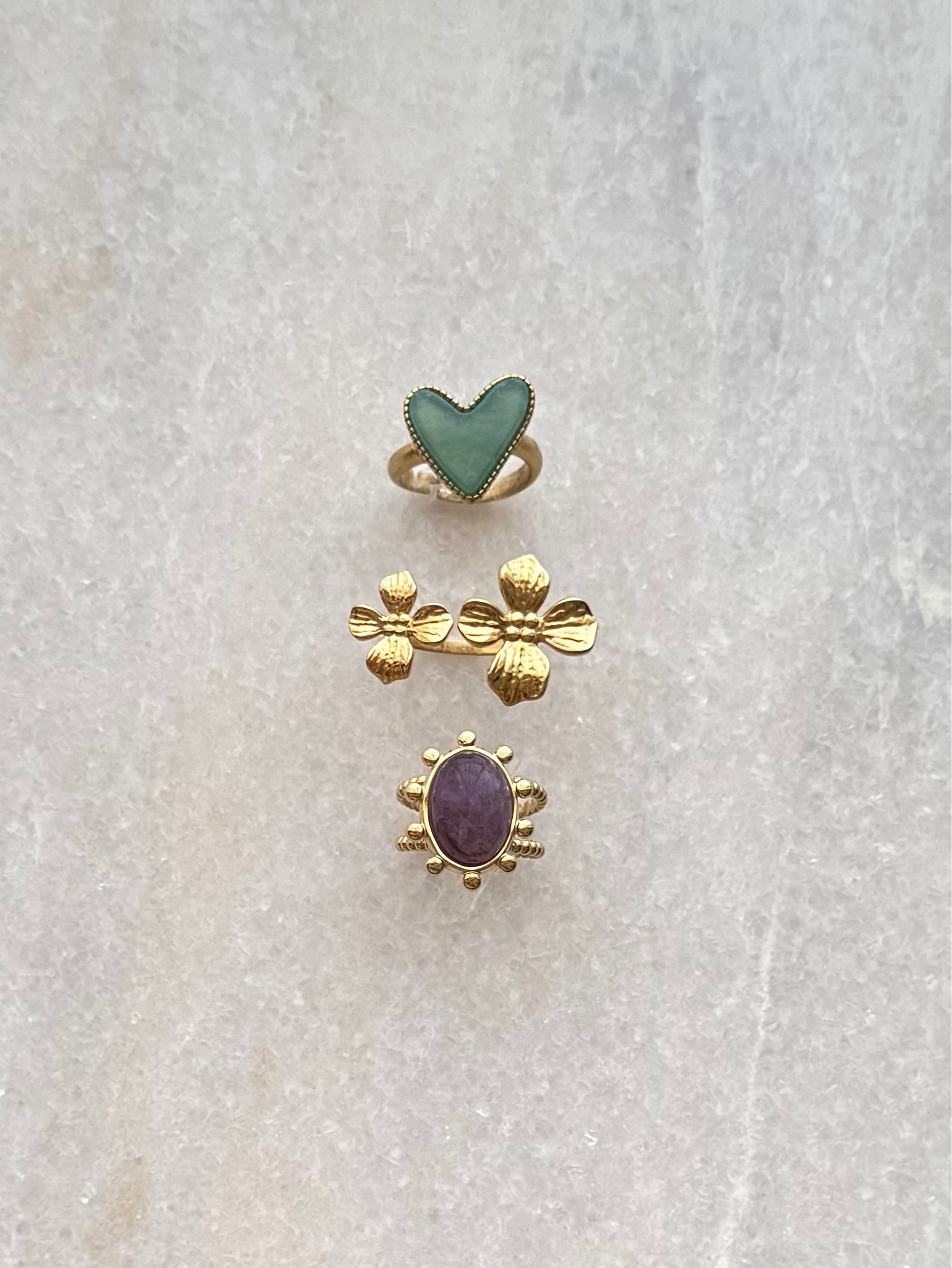 Gouden ring met hartje en natuursteen | Stainless teel ring kopen online | BY BLOOM sieraden